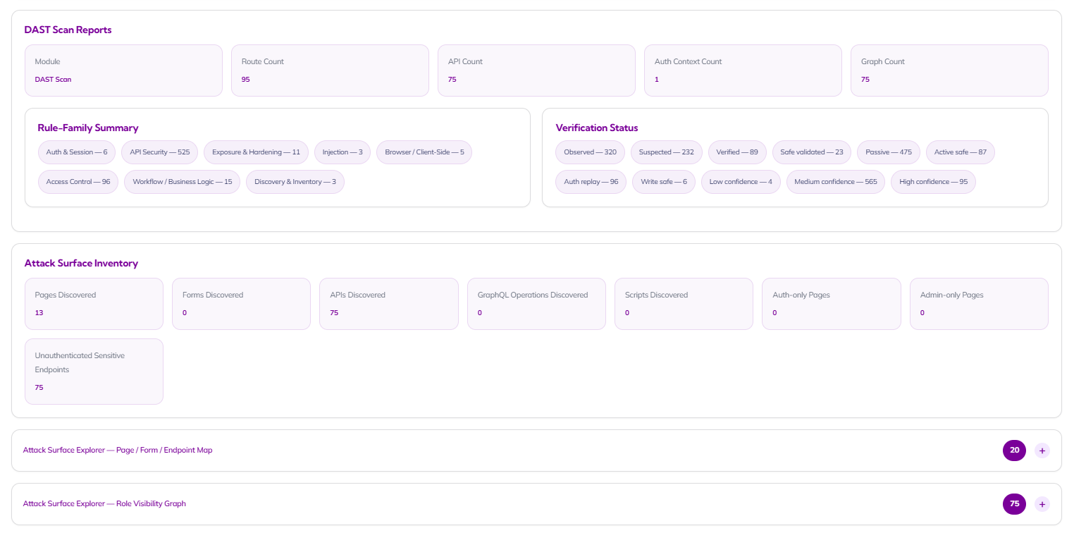 DAST Scan Reports / Attack Surface Inventory