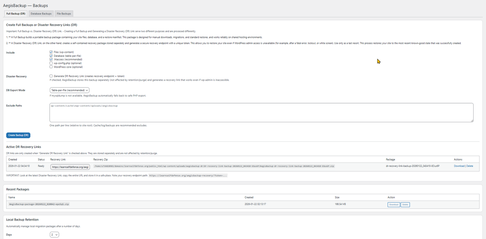 AegisBackup gives you full control and visibility over your backups from scheduled snapshots and pre-update rollbacks to one-click restores, migrations, and emergency recovery links all handled securely inside WordPress.