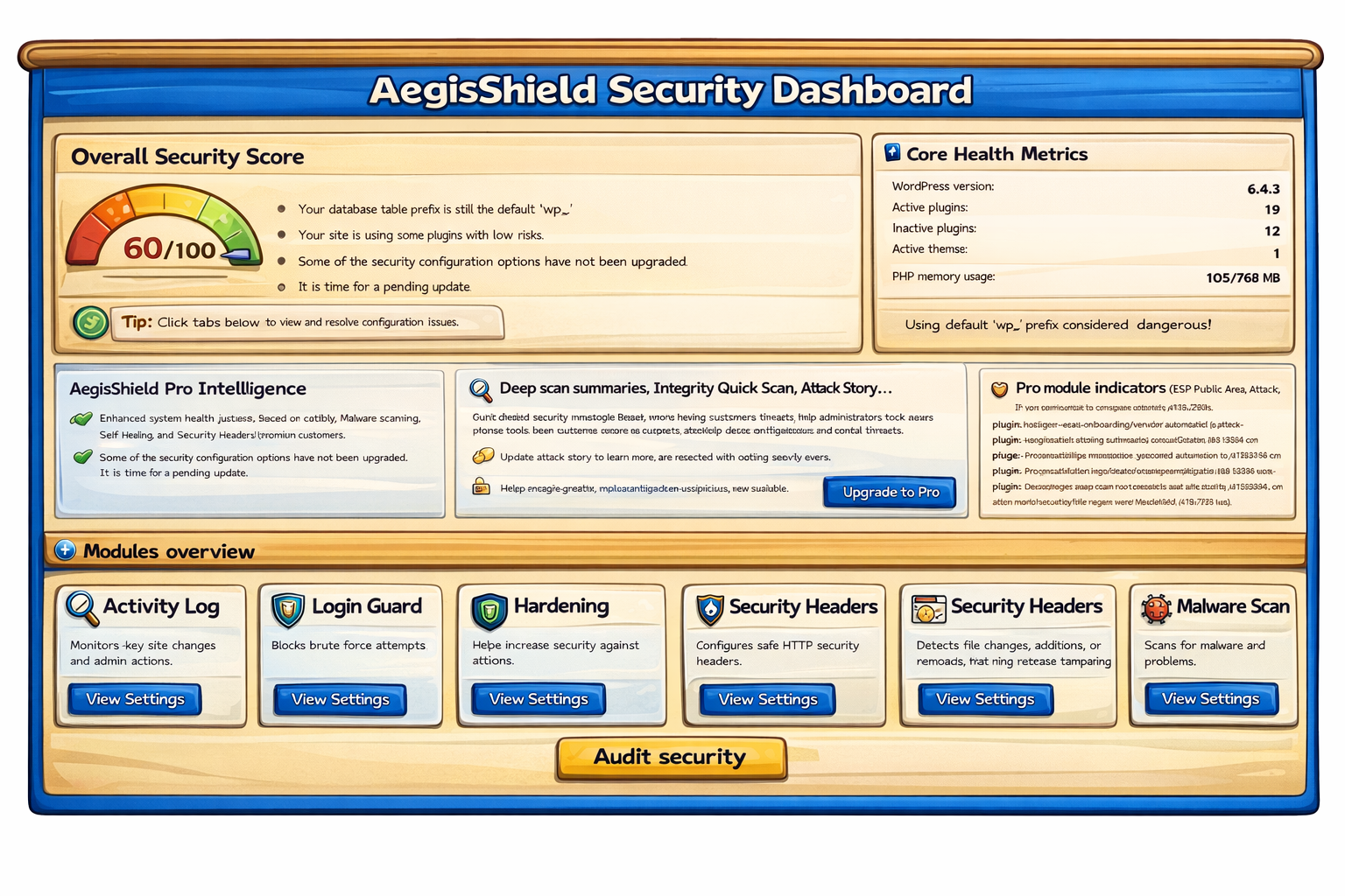 WordPress Plugins: AegisShield | AegisWaf | AegisSEO | AegisSpam | AegisLink | AegisSiteMap | AegisTicket