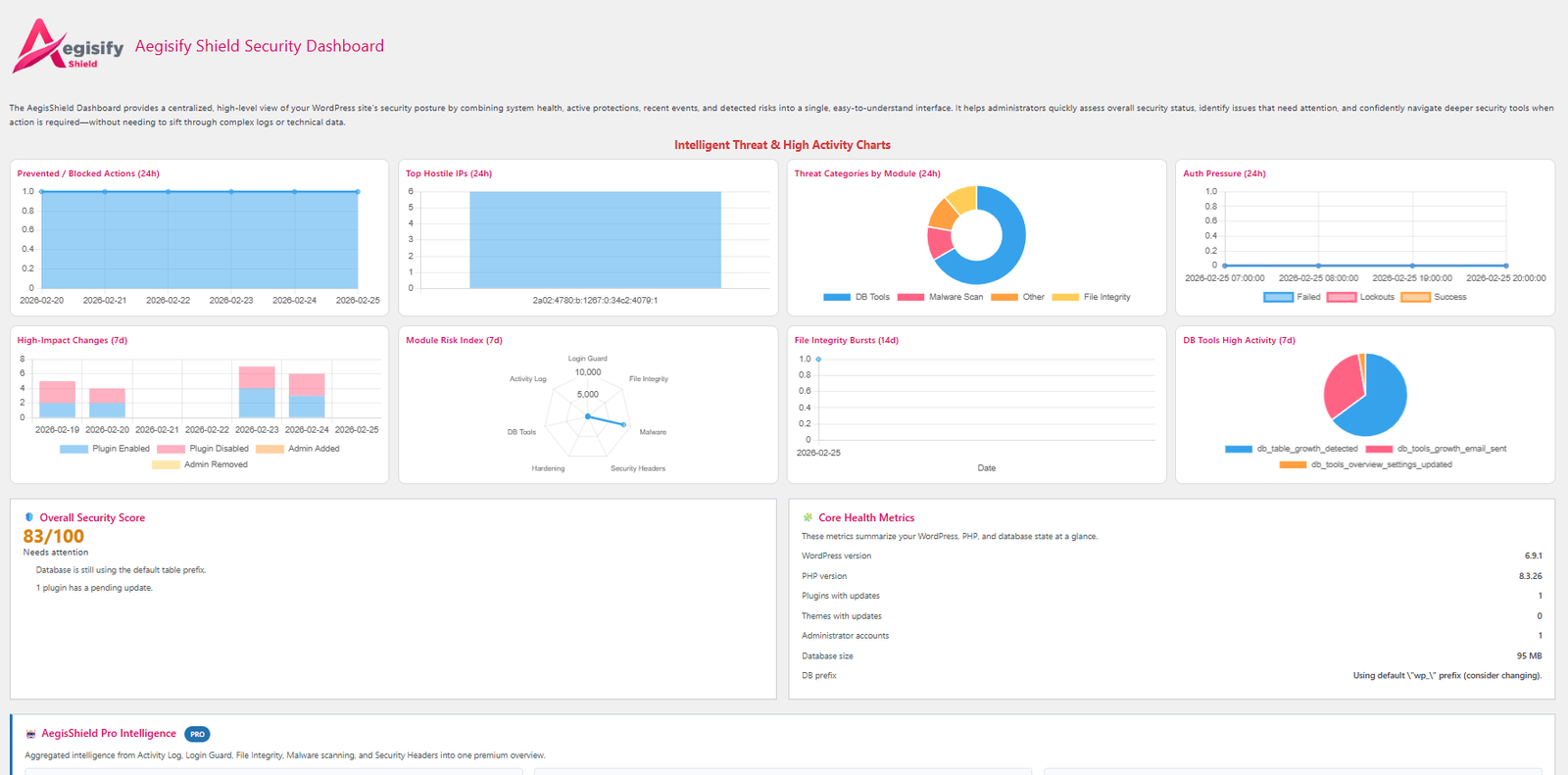 Unlike many plugins, Aegisify Shield includes safe database prefixing with backups and rollback perfect for shared hosting scenarios where manual DB surgery is dangerous.